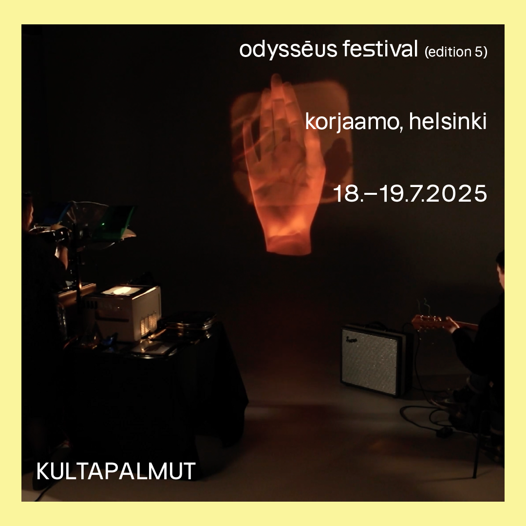 Kultapalmut are Topias Tiheäsalo and Pauliina Mäkelä. They will present their audiovisual live set at Korjaamo’s Kino, the perfect venue for this.